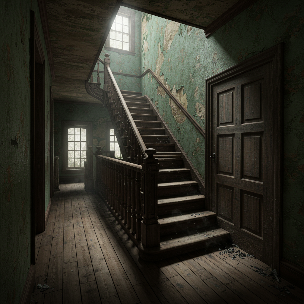 이 집에는 2층 천장으로 곧장 이어지는 계단이 있습니다. 계단을 오르면 천장에 막혀 더 이상 올라갈 수 없죠. 이는 영혼들을 혼란시키거나, 혹은 영원히 끝나지 않는 상승을 통해 저주를 피하려는 사라의 의도가 담겨있다는 해석이 많습니다. - ② 벽으로 통하는 문: 미로 속 숨겨진 함정
